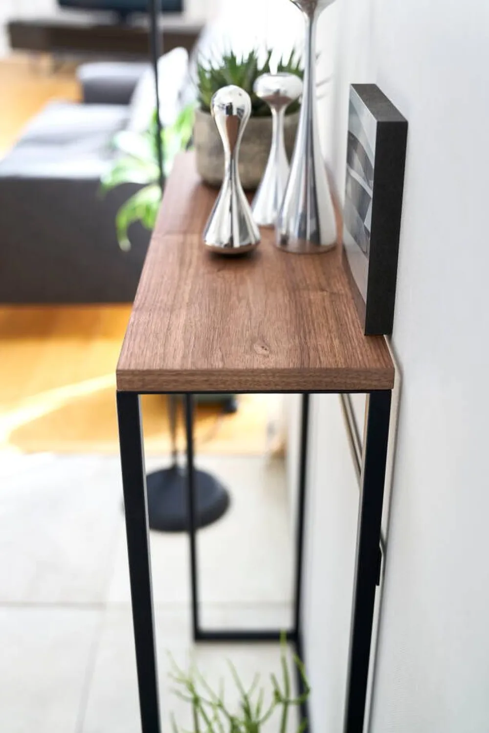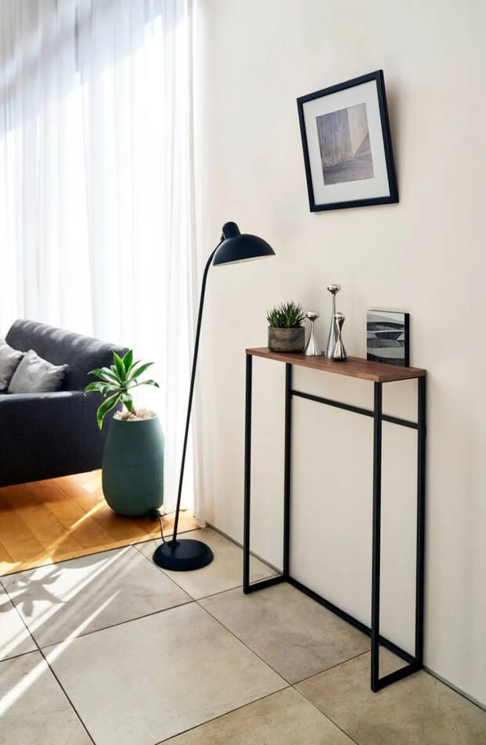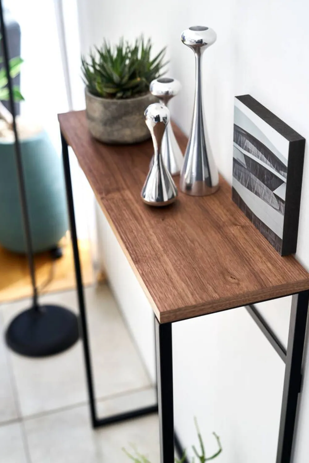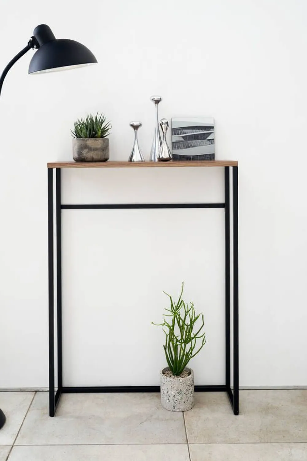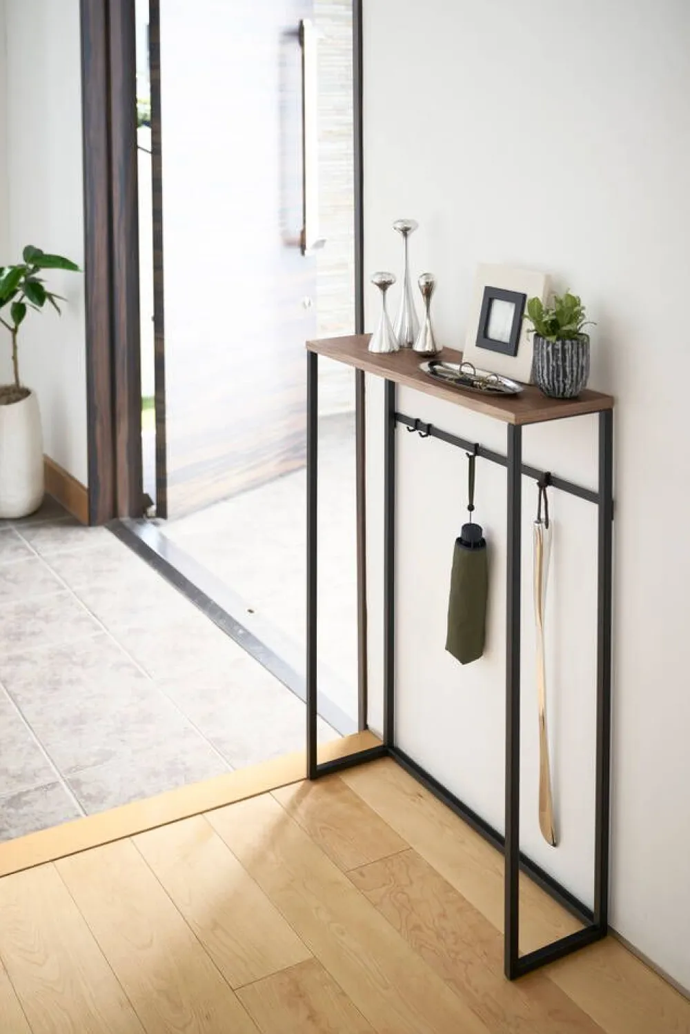 Minimalistinen konsolipöytä sopii erinomaisesti esim. eteisen sivupöydäksi, koska koukkuihin voi kätevästi ripusta…