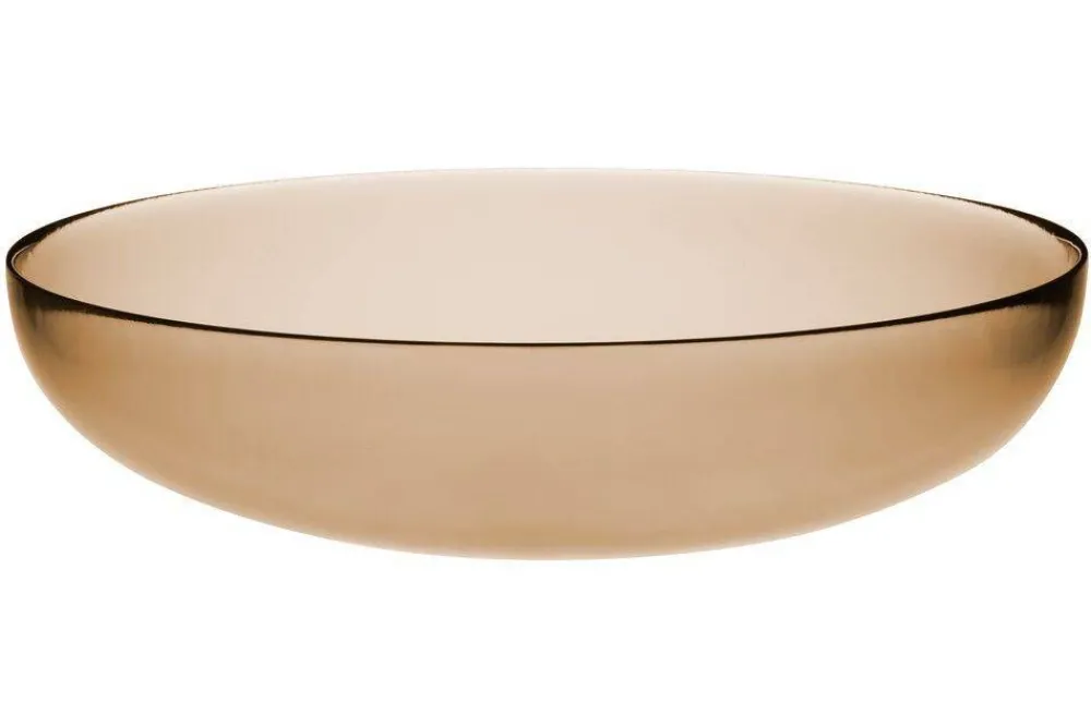 Kaunis meripihkan värinen kulho on valmistettu kierrätyslasista. Halkaisija 32 cm.Lisää tietojaHoito-ohjeet:Konepesu…