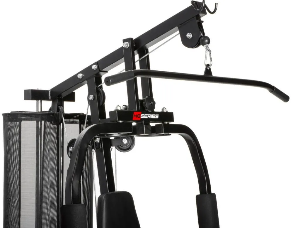 | Ominaisuudet: Painopakassa täyspitkä mesh-kangassuoja. Rintaprässi / pec deck. Ylätalja / alatalja. Reidenojentaja / reidenkoukistus |