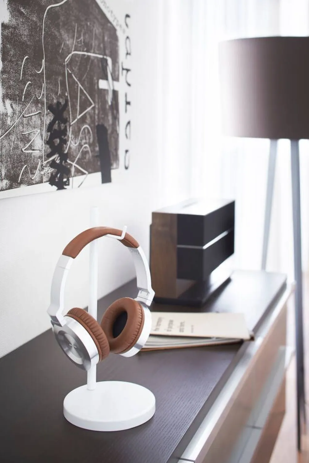Yamazakin Beautes-kuuloketeline on siisti ja käytännöllinen tapa säilyttää kuulokkeita tietokonepöydällä etäta…