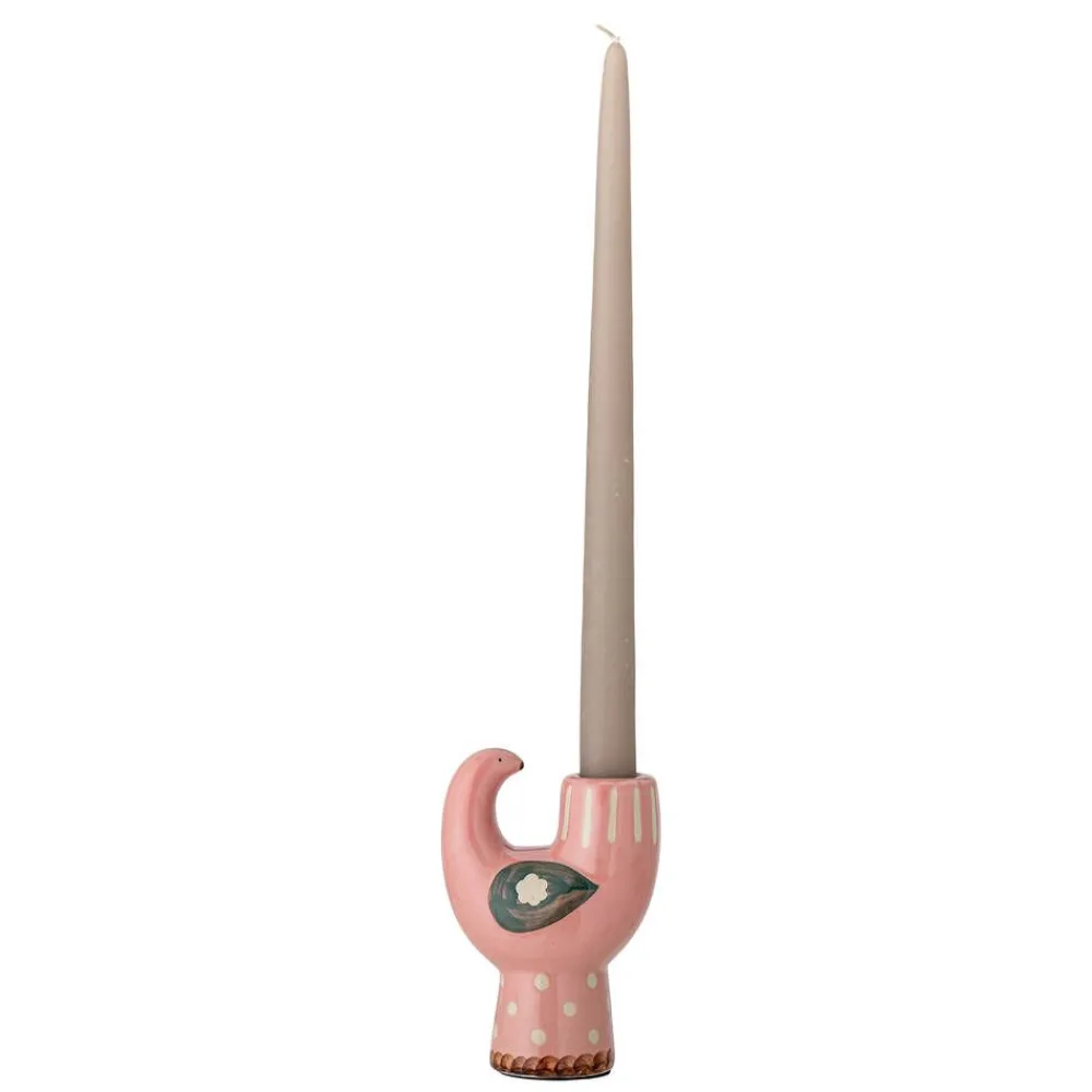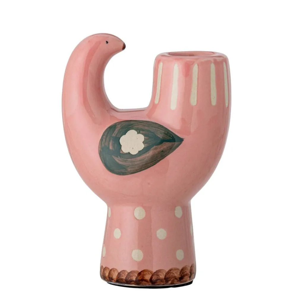 Trudy-kynttilänjalka on kivitavaraa ja linnun muotoinen. Kaunis vaaleanpunainen lasite ja käsinmaalatut yksityiskohdat…