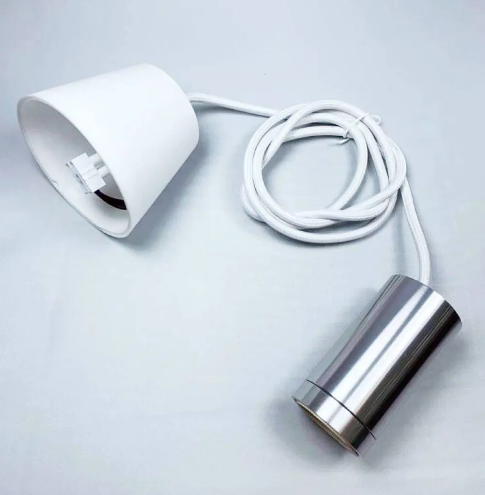 Valkoinen kangaspäällyteinen lampunjohto 1,6M ja tyylikäs alumiininen lampunpidinLisää tietojaIP-luokka:IP20Kanta:E…