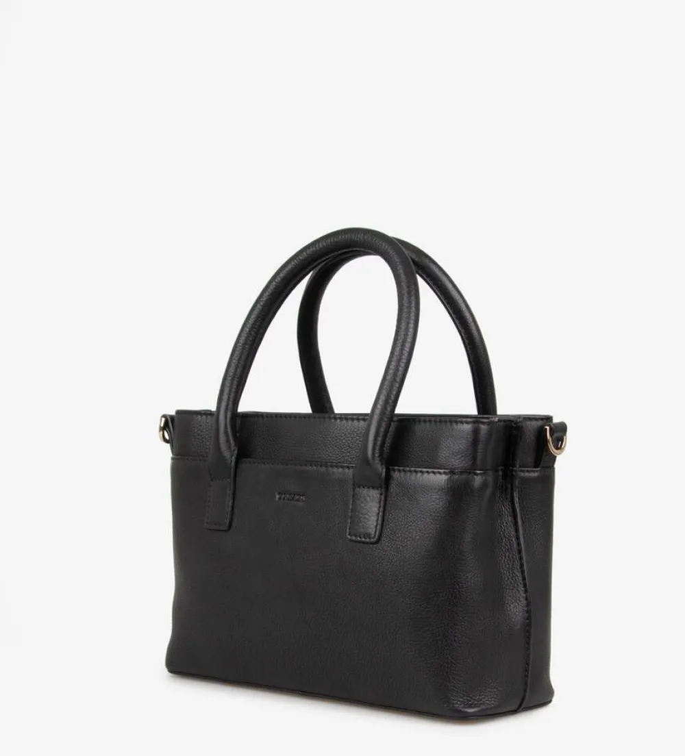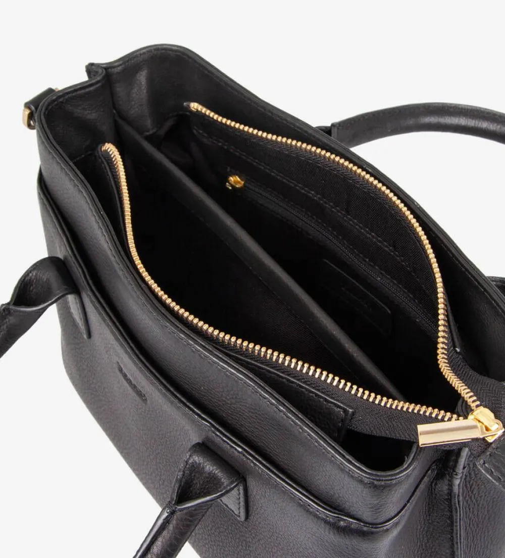 Tyylikäs ja käytännöllinen nahkalaukku säädettävällä ja irrotettavalla olkahihnalla. Laukussa on avotasku edess…