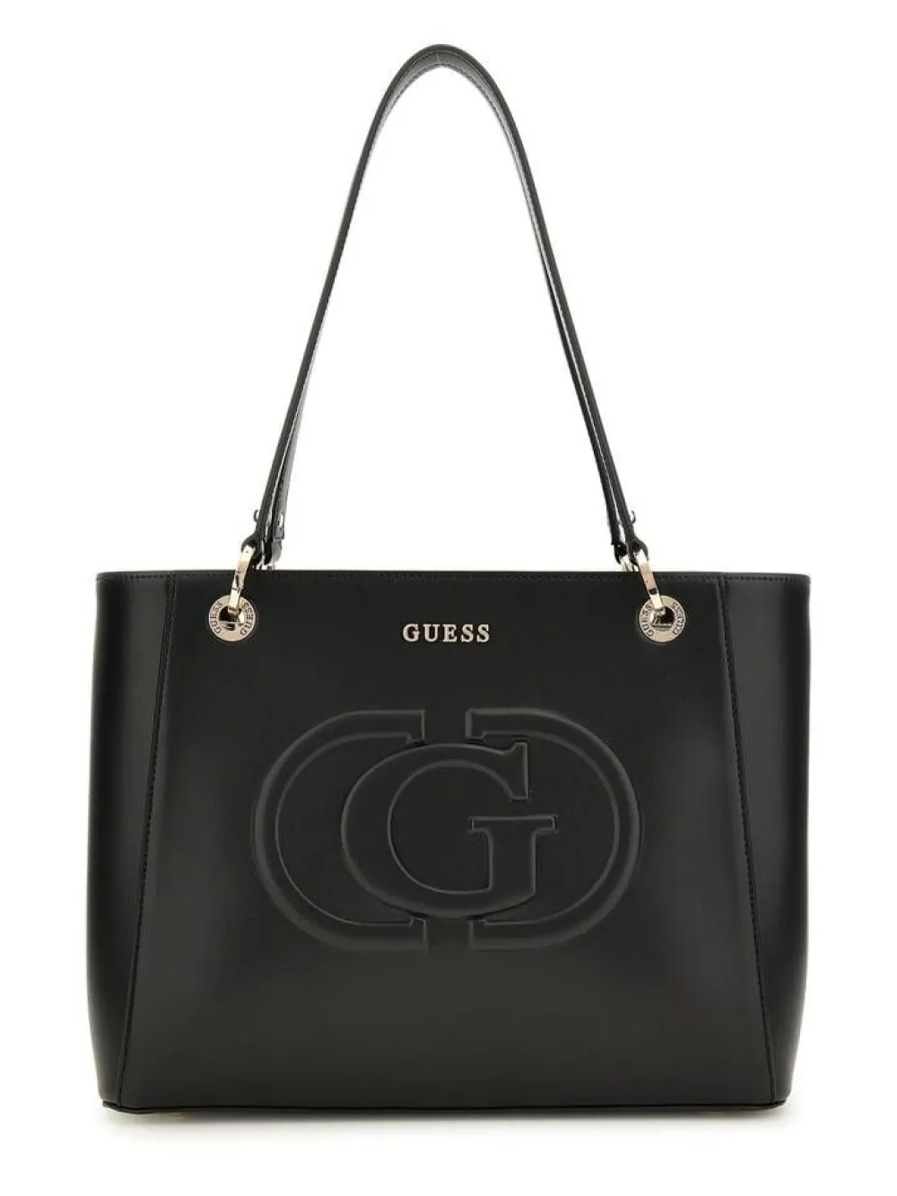 Tyylikäs musta laukku etupuolen isolla G-logolla. Laukussa on pitkät käsikahvat.Lisää tietojaKiinnitys: Vetoketju/p…