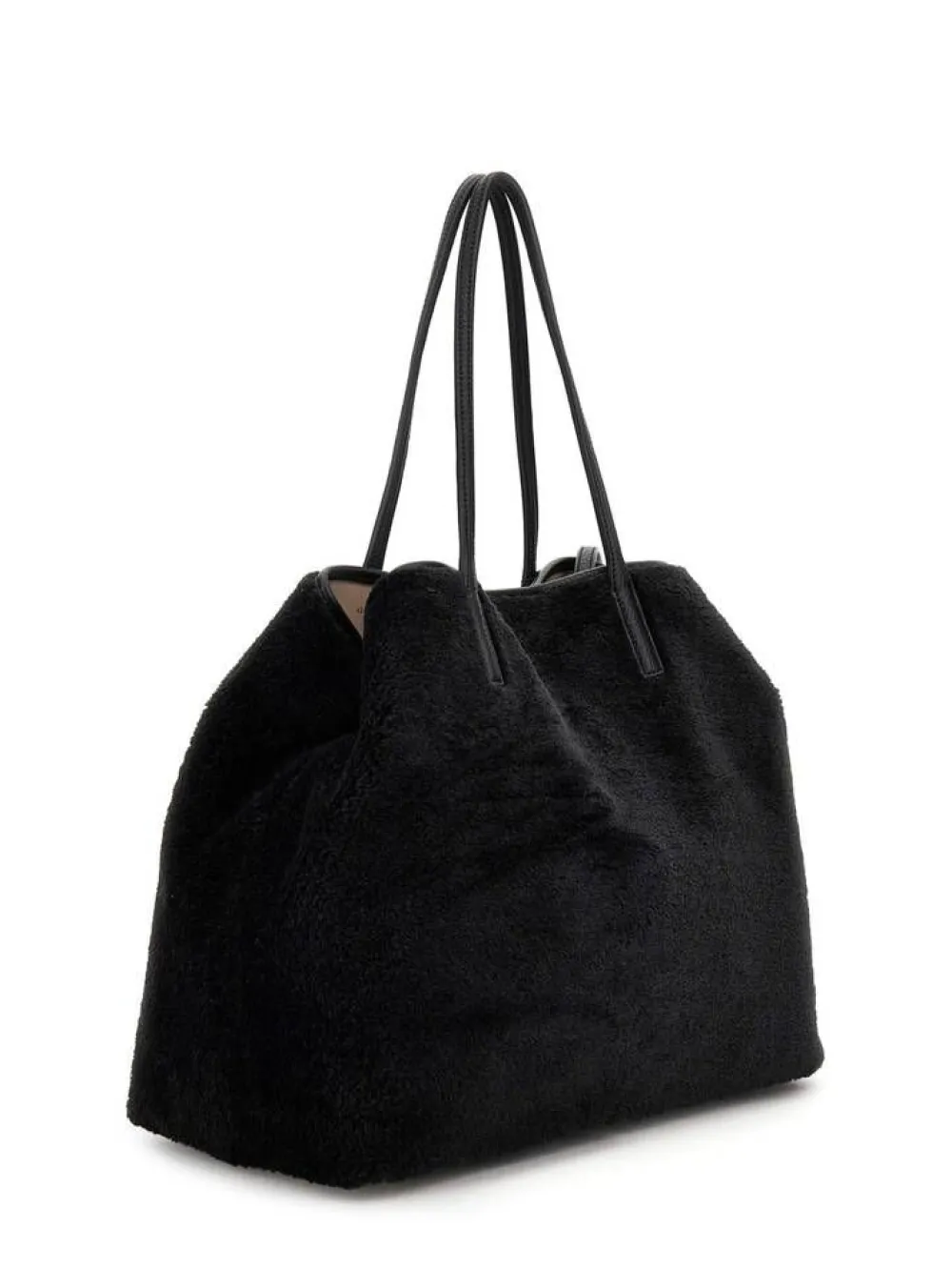 Trendikäs tilava laukku, jossa on vetoketjullinen pikkulaukku mukana. Isomman laukun ulkopuoli on synteettista karvapin…