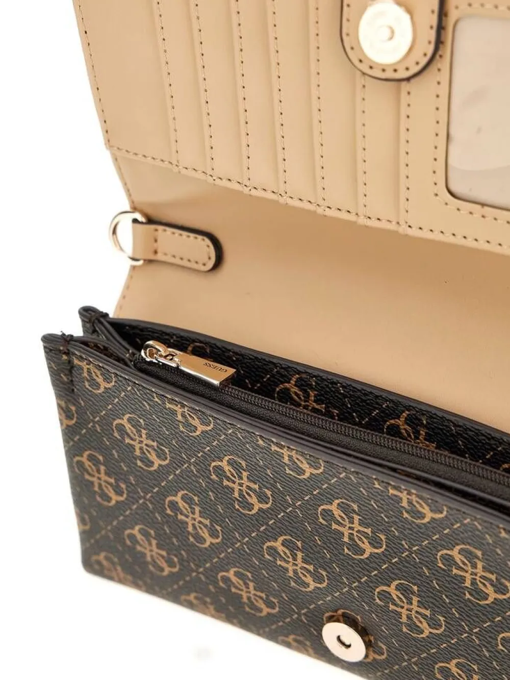 Klassinen leveän mallinen pikkulaukku läppäkannella, jossa on magneettinappi. Sisäpuoli on kaksiosainen, jonka väli…