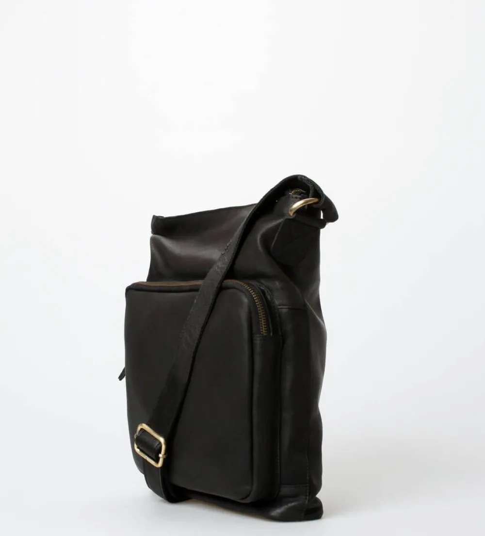 Nahkapintainen olkalaukku ulkonevalla vetoketjutaskulla.Lisää tietojaKiinnitys:VetoketjuMateriaali:NahkaSäädettävä…