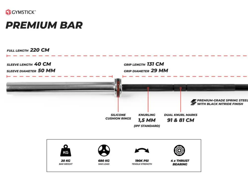 Gymstick Competition Bar 20 kg levytanko on valmistettu laadukkaista materiaaleista. Tangon vetolujuus on jopa 190k ja s…
