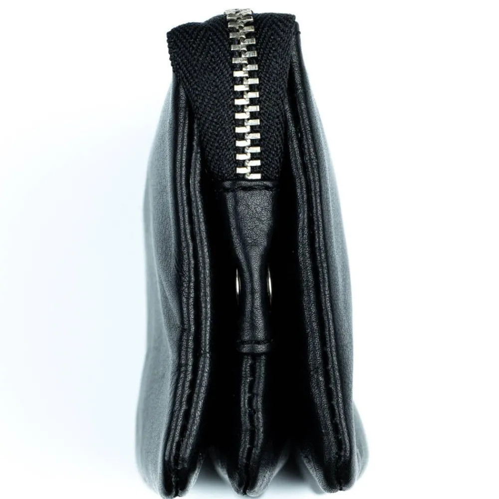 Näpsäkkä pussukkamallinen lompakko nahkapinnalla ja vetoketjukiinnityksellä. Sisäpuolella on kolikkotasku ja kortti…