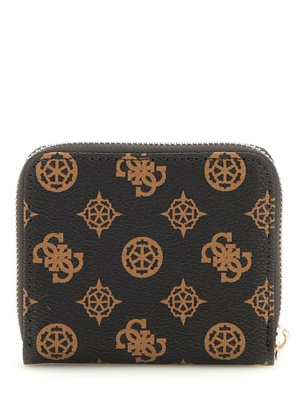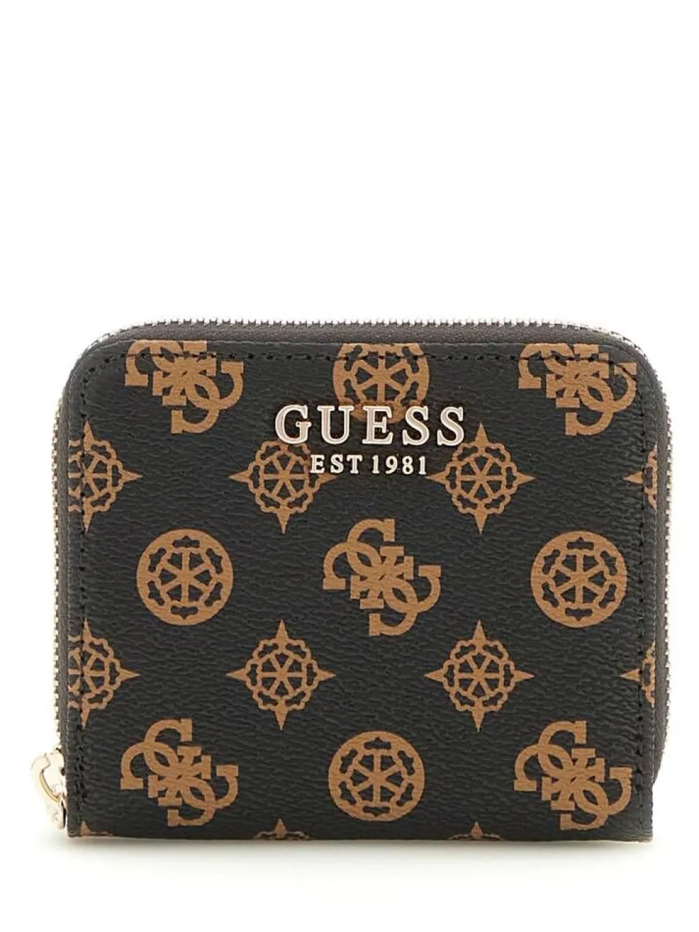 Klassinen vetoketjullinen lompakko tunnistettavalla pionilogo-pinnalla ja etupuolen Guess-kirjainlogolla. Lompakossa 4 k…