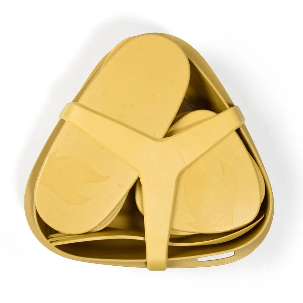 | Ominaisuudet: Tiskikoneen, mikron ja pakastamisen kestävä. Helppo puhdistaa. Kelluu. Lautaset ovat pinottavia tilan säästämiseksi. Spork Original BIO aterin on paistinpannun kuumuuden kestävä. Kuljetuspussin kuivatusreikien ansiosta osat voi pakata siihen myös tiskaamisen jälkeen märkinä. |