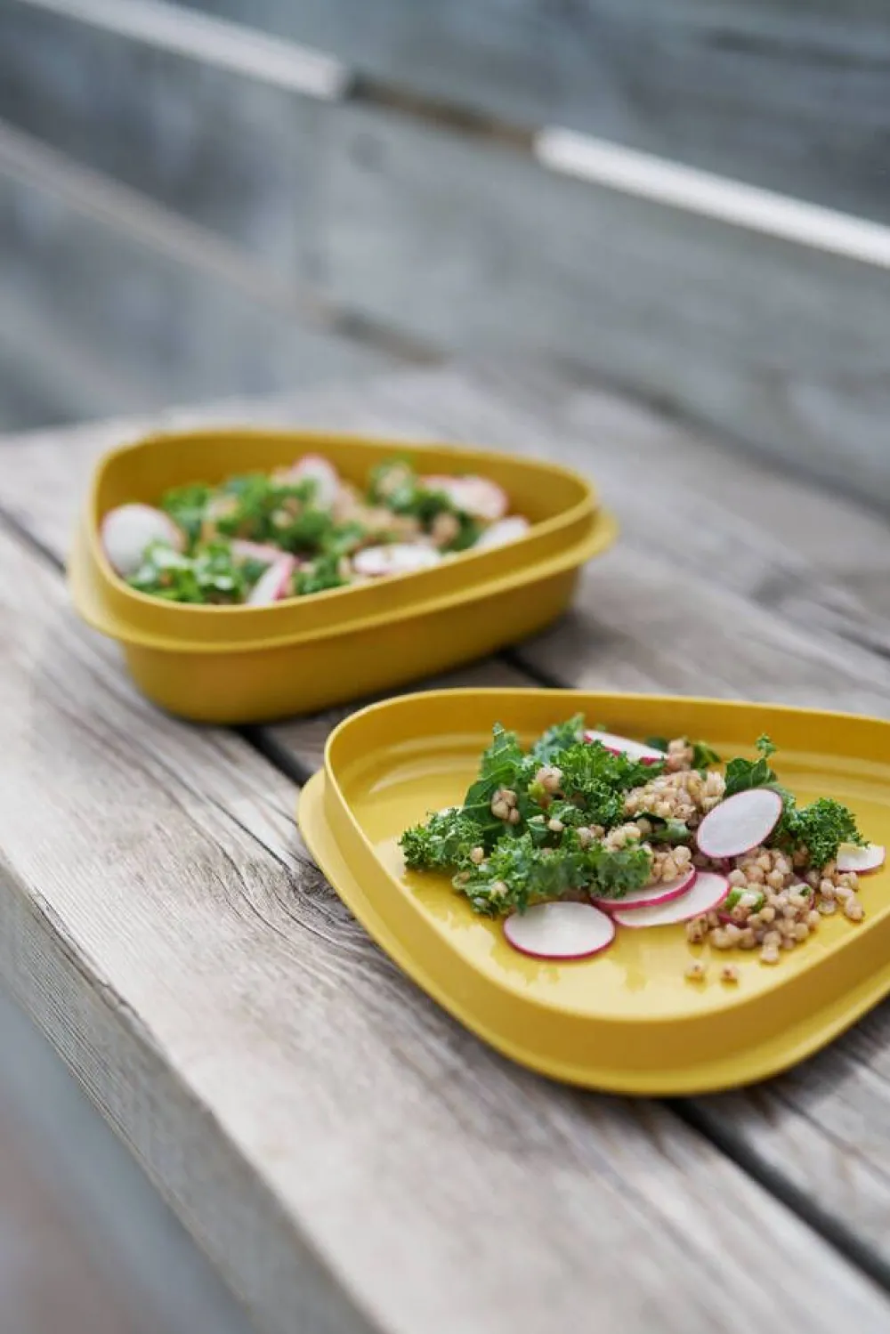 | Yhden myyntipakkauksen sisältö:Syvä ja matala lautanen, Spork Original BIO -aterin sekä kaksi SnapBox BIO -rasiaa |