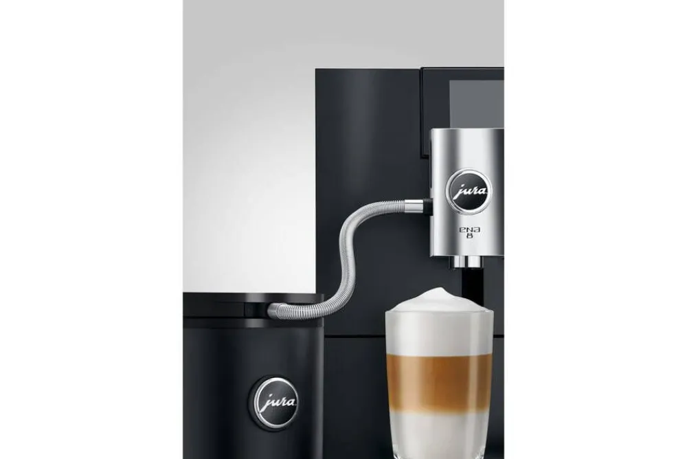 Korkealaatuisen, ruostumattomasta teräksestä valmistetun kierrejousen sisällä oleva maitoletku yhdistää maitoastia…