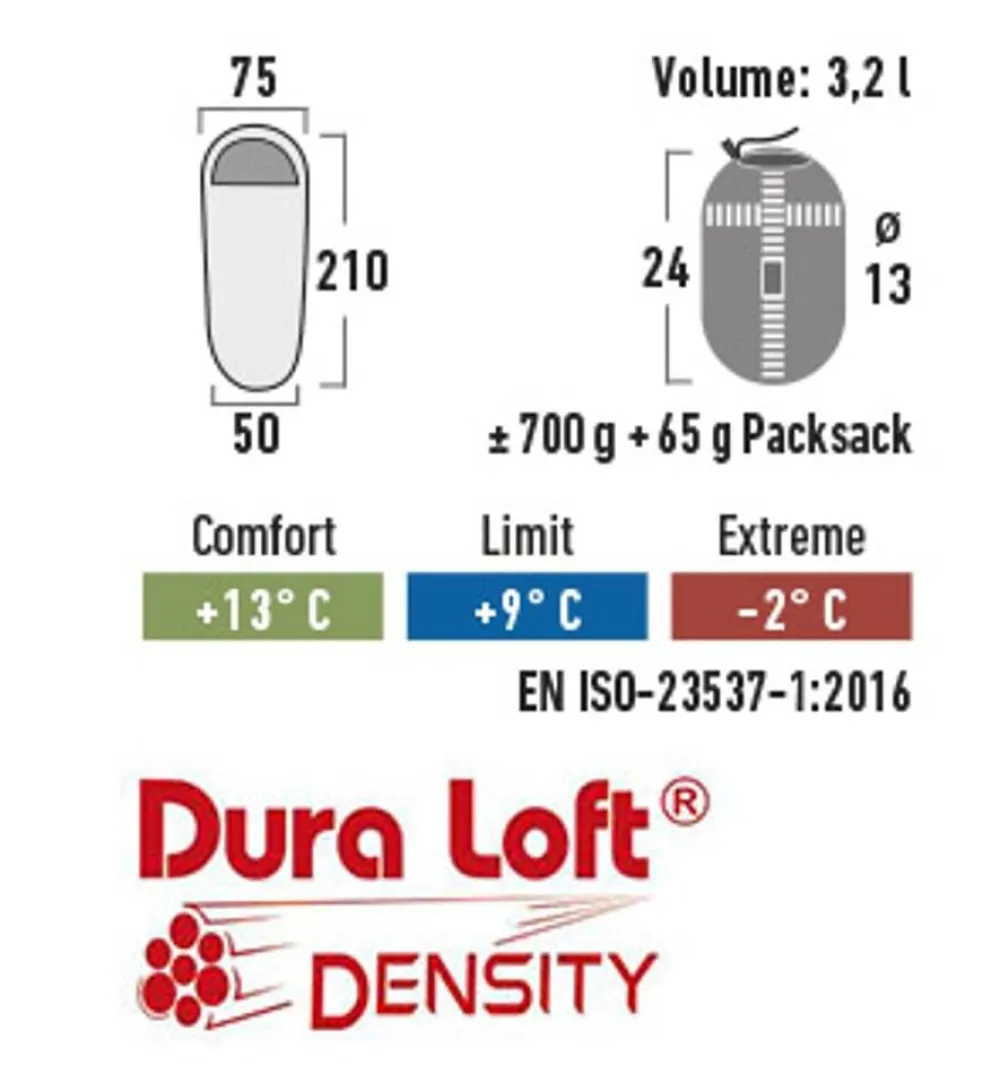 Huippu teknisistä kierrätysmateriaaleista tehty pieneen tilaan mahtuva vaelluspussi. Lämpötilasuositus 13/9/-2C. Kok…