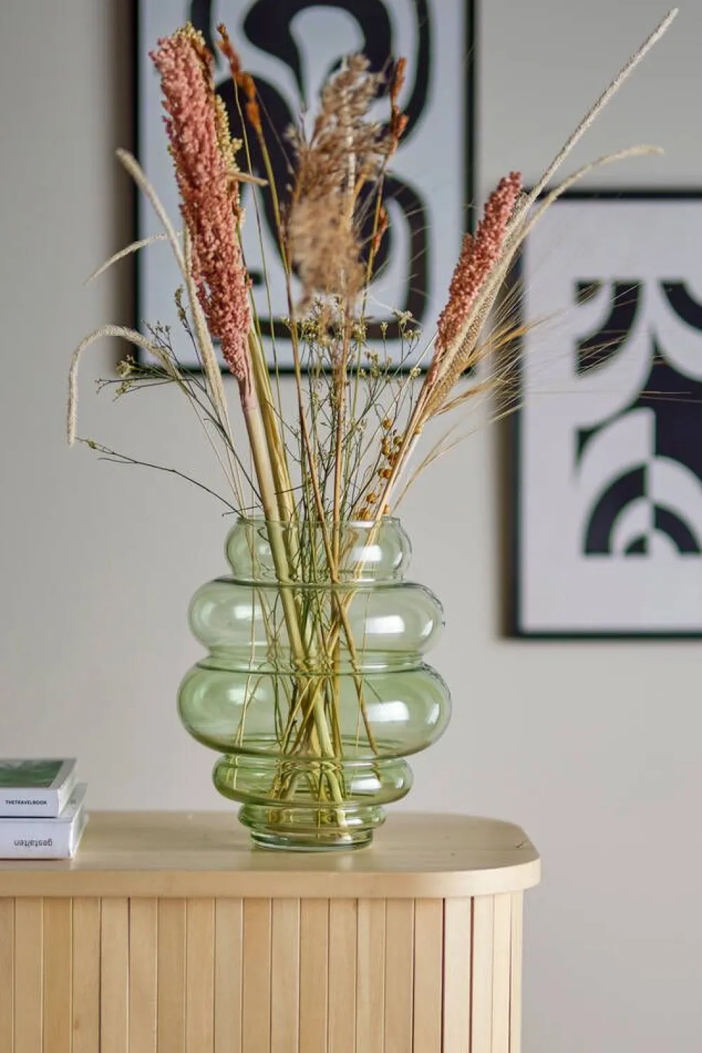 Annhelene-maljakko on vihreästä lasista valmistettu koristeellinen maljakko, jolla on leikkisä ja kupliva ulkonäkö….