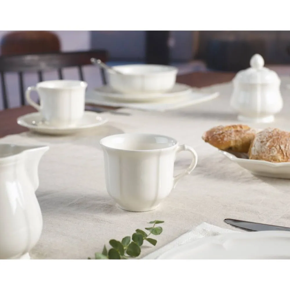 | Kätevän muotonsa ansiosta kuppi sopii myös pitopalvelukäyttöön ja täydentää kauniisti Manoir-astiaston. |
