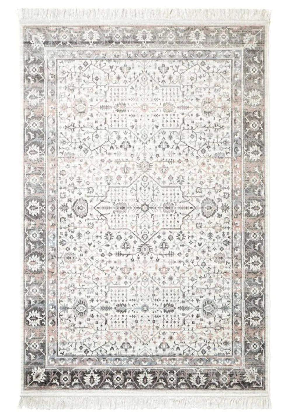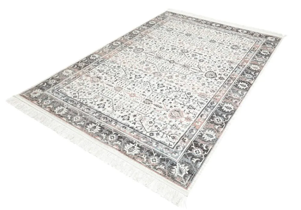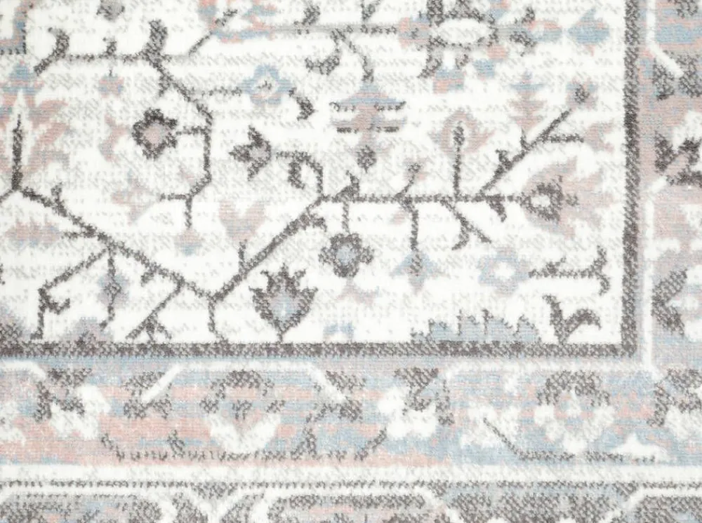 Matossa on lyhyt, kauniisti valoa taittava nukka. Maton klassinen kuosi vaalealla pohjalla sopii moneen sisustukseen. Pastellisävyt antavat matolle raikkaan ilmeen. Hoitona säännöllinen imurointi ja tuuletus.