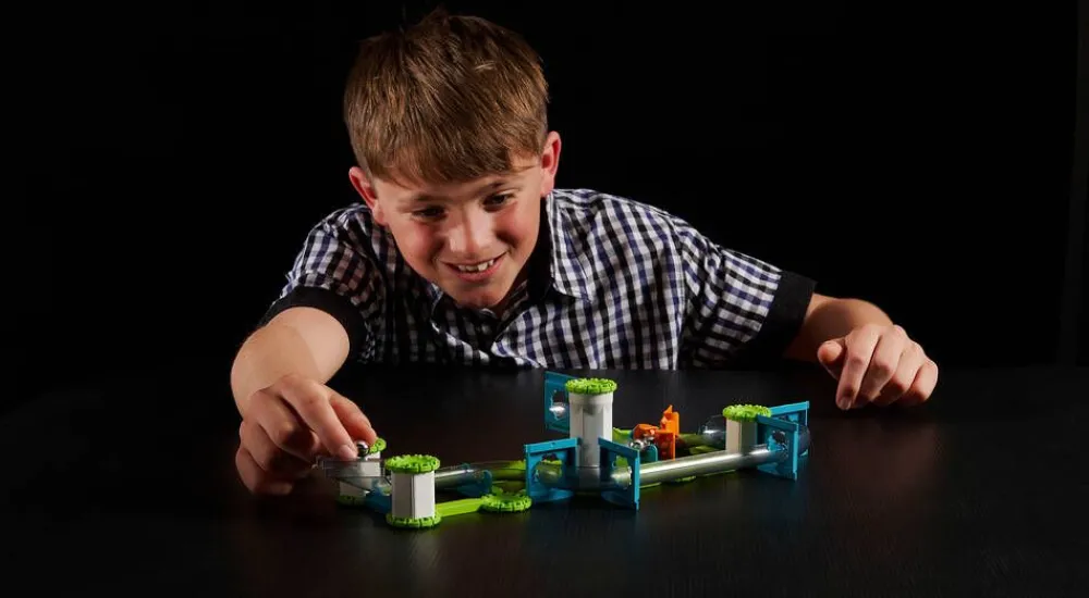 Rakenna jännittäviä ratoja ja tutki, kuinka metallikuula liikkuu painovoiman ja magneettien voimalla eteenpäin aiheu…