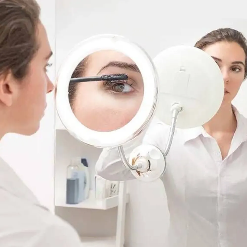 Meikkipeili Led on varustettu peilillä, jossa on joustava varsi, imukuppi ja suurennustoiminto.Lisää tietojaParistot …