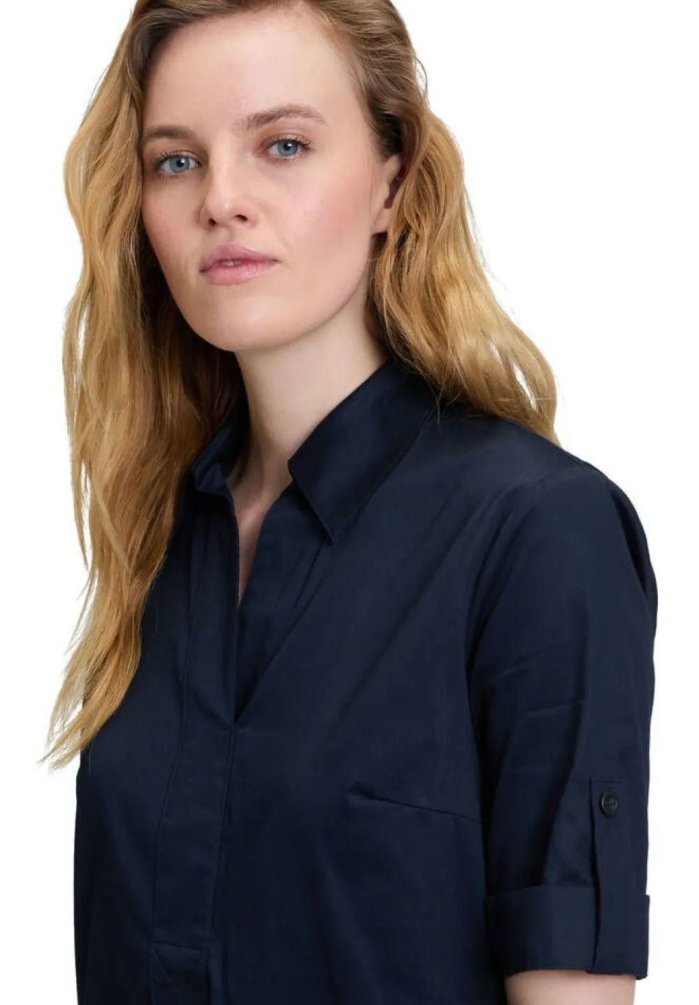 Kaulukselline puuvillamekko käännettävillä hihoilla. Ryhdikkään ja samalla rennon mallin ansiosta mekko sopii käy…