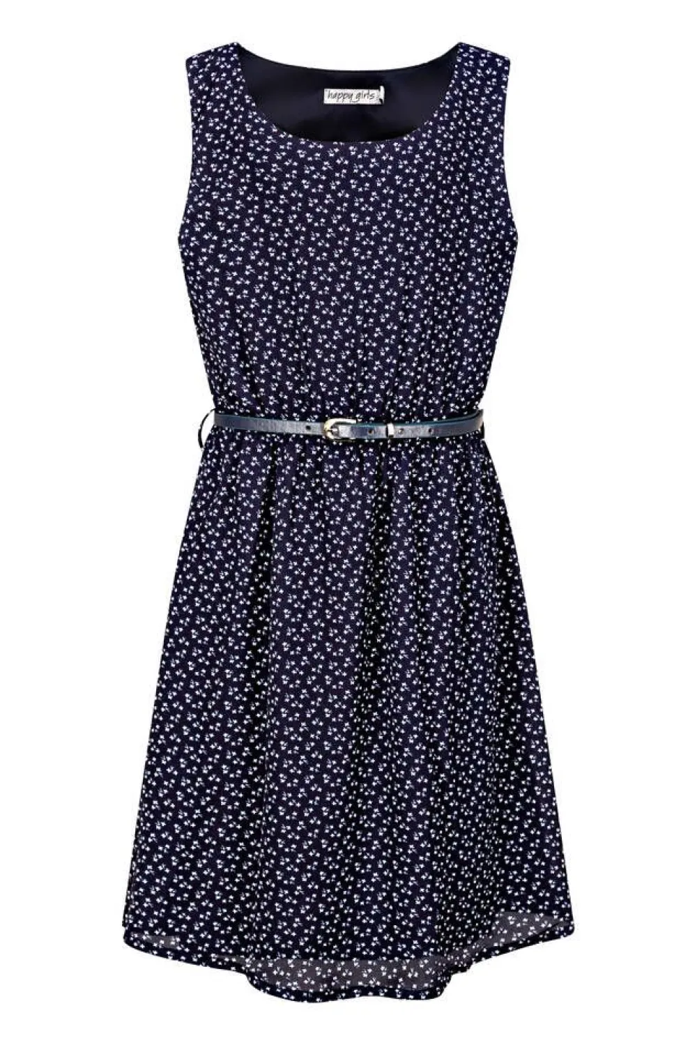 Hihaton mekko pienellä valkoisella printillä. Vyötäröllä on kapea solkivyö.Lisää tietojaHoito-ohje:Vesipesu 30M…