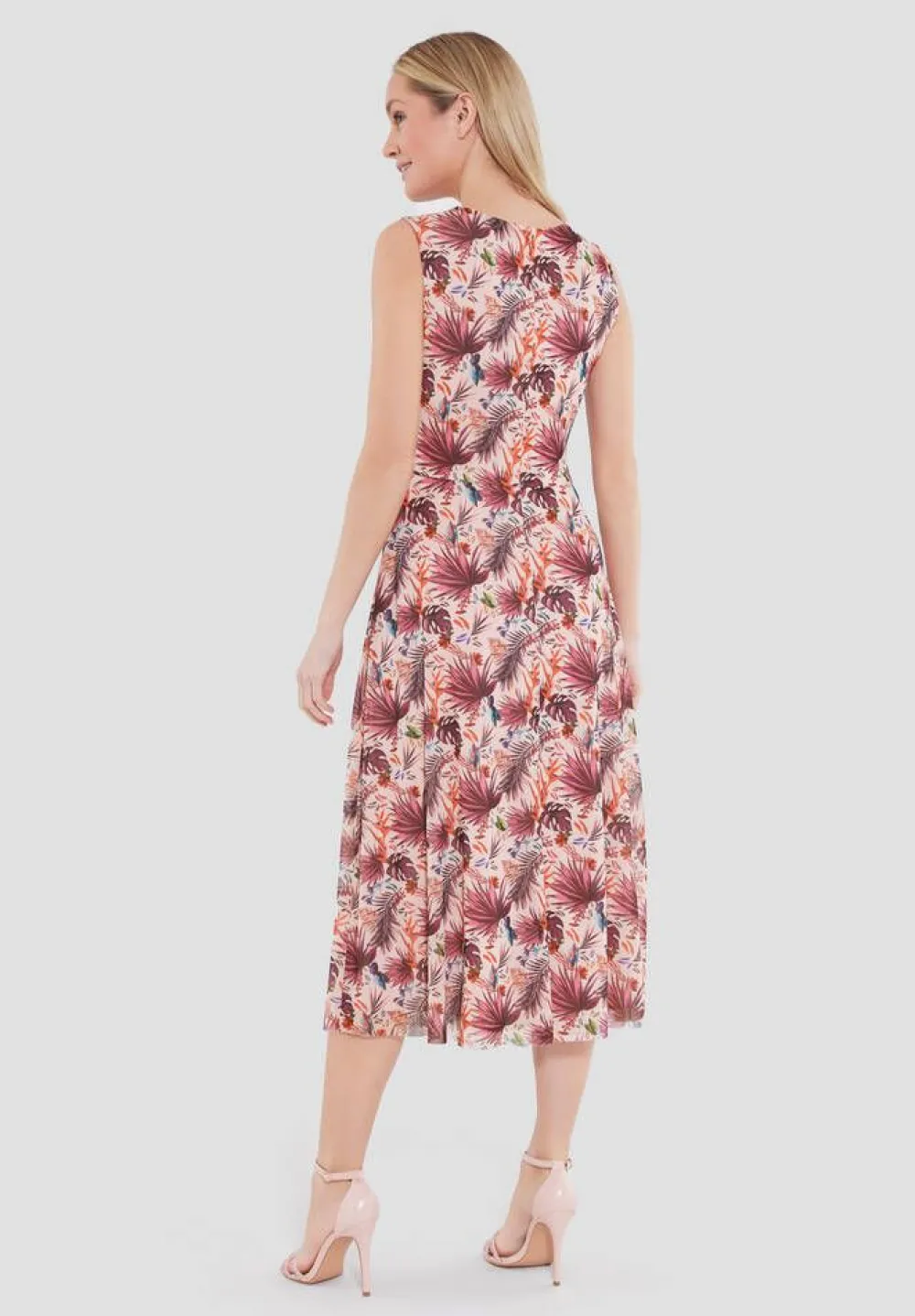Hihaton mesh-kankainen midimekko tyylikkäällä printillä. Joustavassa mekossa on ihana kellohelma ja vyötäröllä p…
