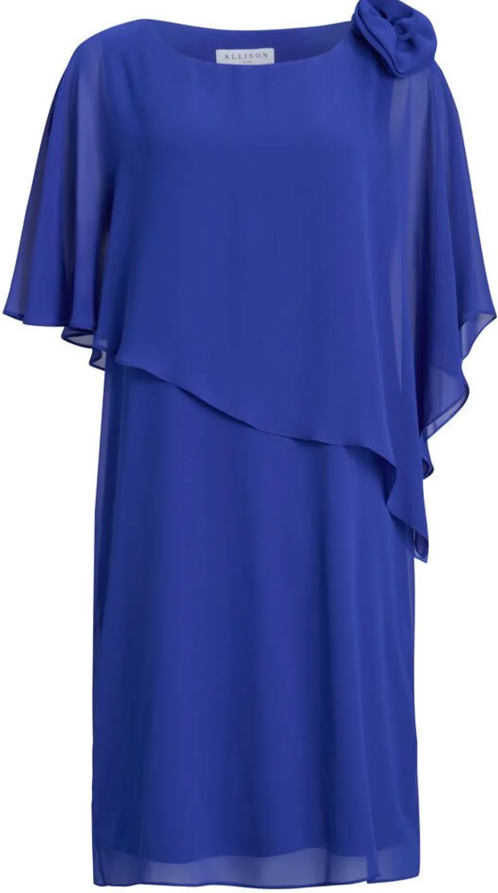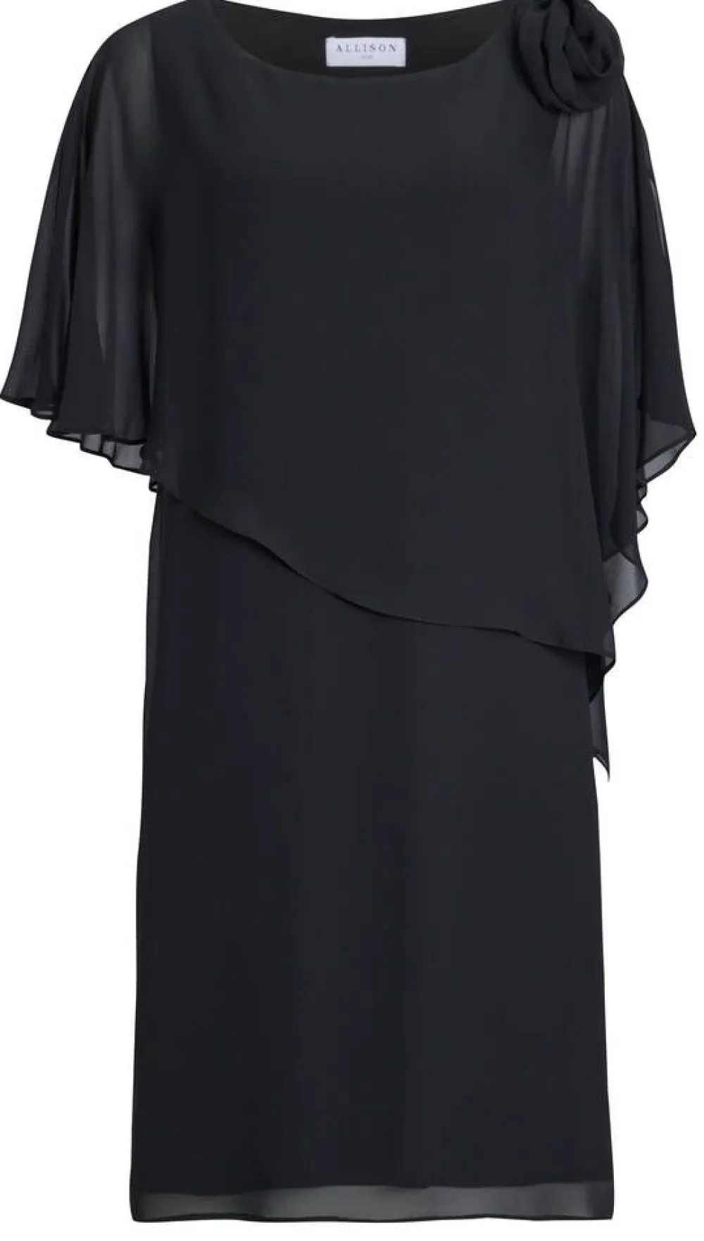 Näyttävä sifonkimekko huiviponcholla. Toisella olkapäällä on irrotettava ruusu.Lisää tietojaRinnanympärys (koko…