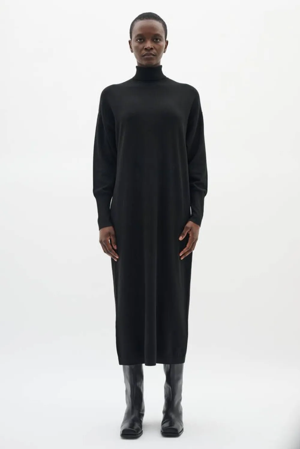 Huipputrendikäs pitkä neulemekko ryhdikkäällä poolokauluksella. Tämä upeus on helppo stailata rennoista arkitilai…