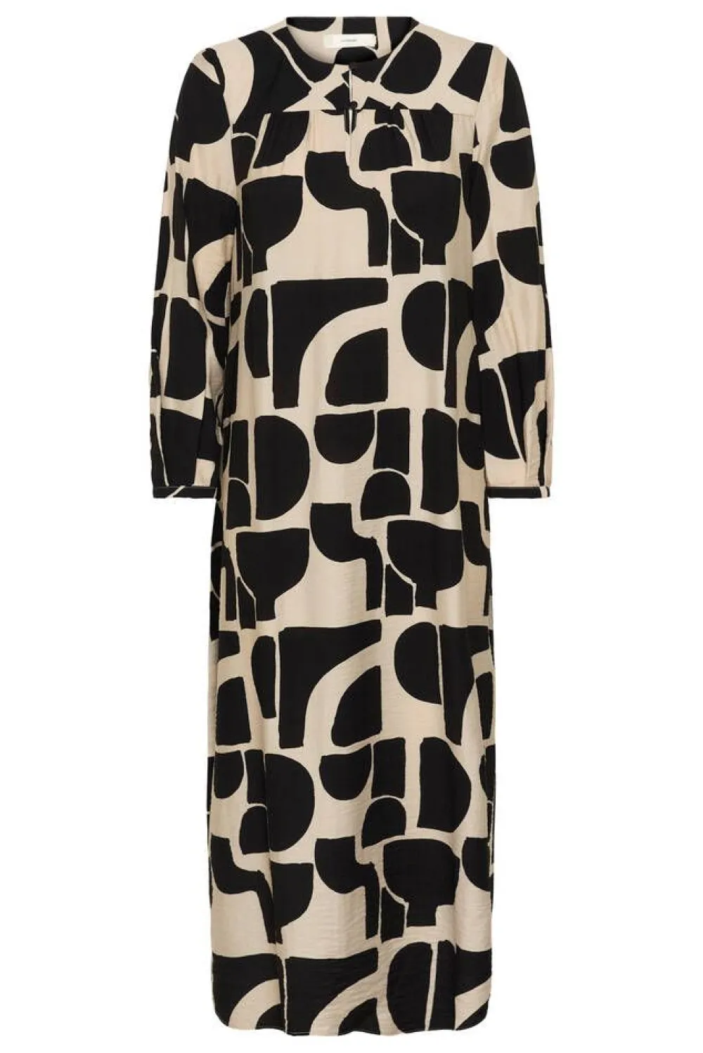 Moderni graafinen kuosi yhdistettynä ajattoman klassiseen pitkään suoraan malliin tekee tästä mekosta trendikkään…