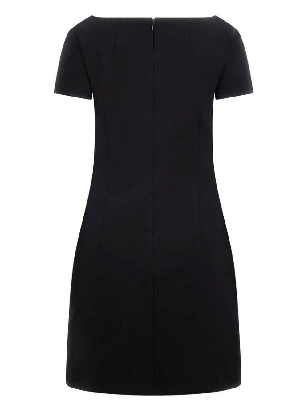 Naisellinen ja trendikäs minimekko näyttävällä vinoon leikatulla pääntiellä ja koristenapeilla. Selässä on vet…