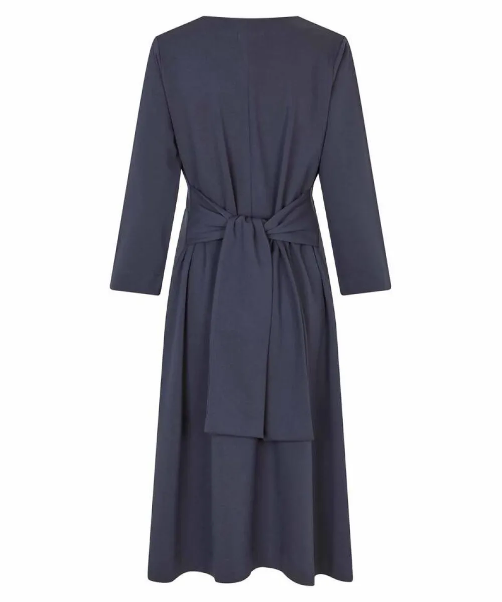 Naisellinen muotoiltu mekko 3/4 hihoilla ja V-pääntiellä. Sivusaumoissa on solmittava kangasvyö.Lisää tietojaMater…