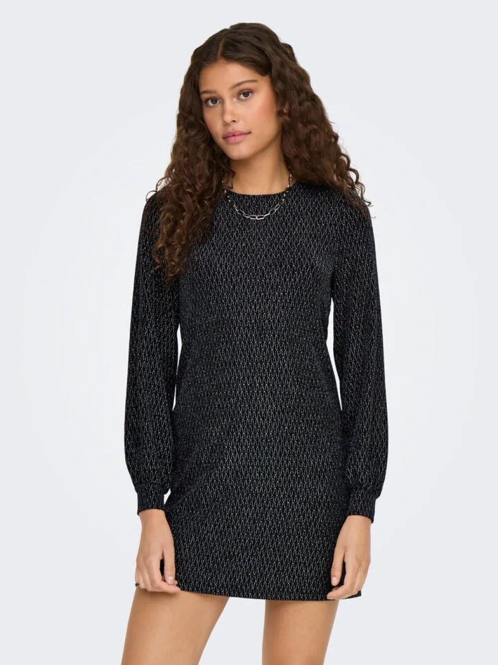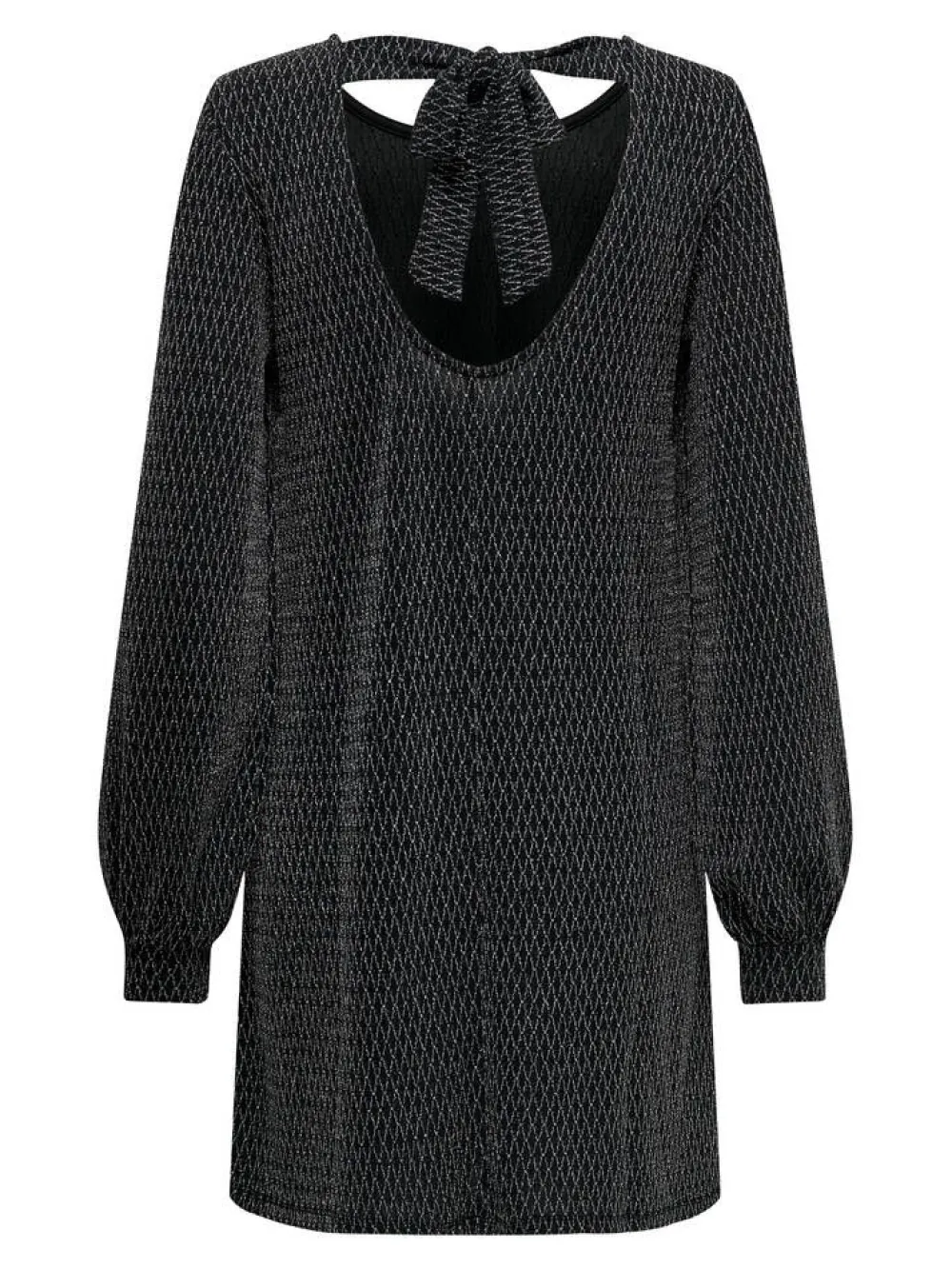 Upea nuorekas pitkähihainen mekko väljällä istuvuudella ja hillityllä glitterkuosilla. Solmittava nauha niskassa.Li…