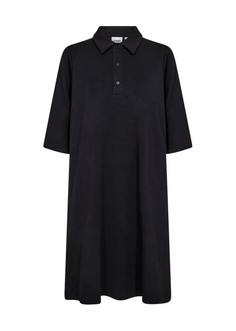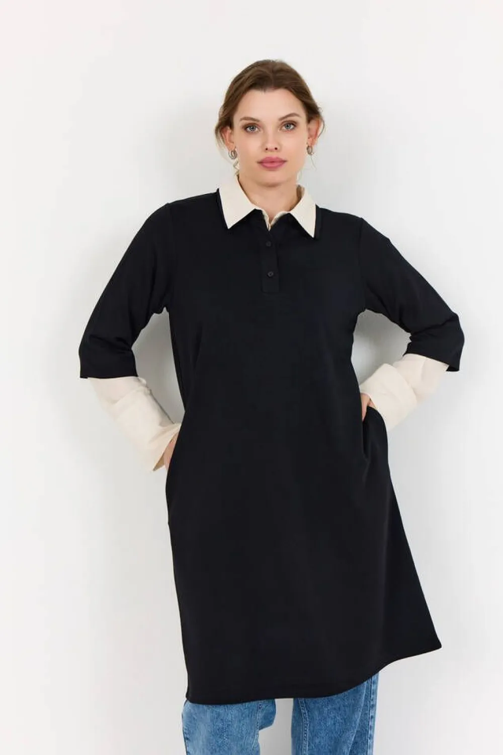 Monikäyttöinen yksivärinen trikoomekko, jossa kaulukset ja puolinapitus pääntiellä. Lyhyet hihat tekevät mallista…