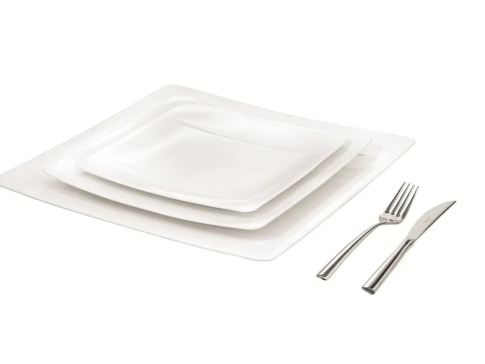 Modern Grace astioiden kulmikas muoto ja ohuen ohut valkoinen luuposliini sopii juhlaviin hetkiin. Astianpesukoneen ja m…