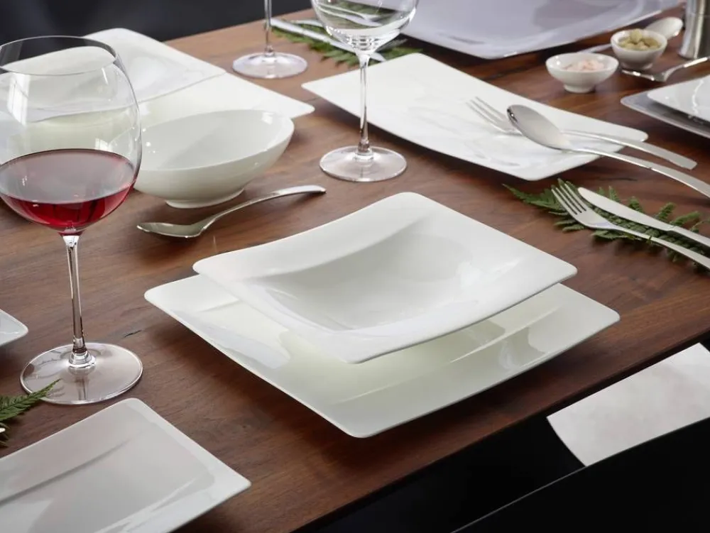 Modern Grace astioiden kulmikas muoto ja ohuen ohut valkoinen luuposliini sopii juhlaviin hetkiin. Astianpesukoneen ja m…