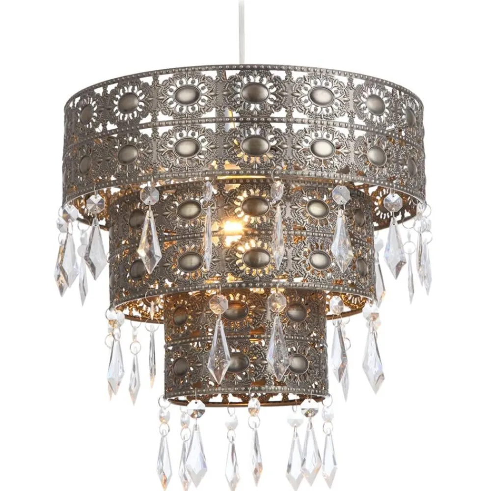 Antiikkimessingin värinen, kaunis, kerroksellinen Naomi riippuvalaisin. Materiaalina metalli, jossa kirkkaita akryylipr…