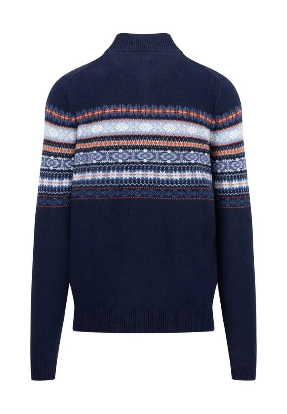 Rennon tyylikäs jacquard neulottu paita monivärisellä kuvioraitakuosilla ja korkealla kauluksella, jossa on puoliveto…