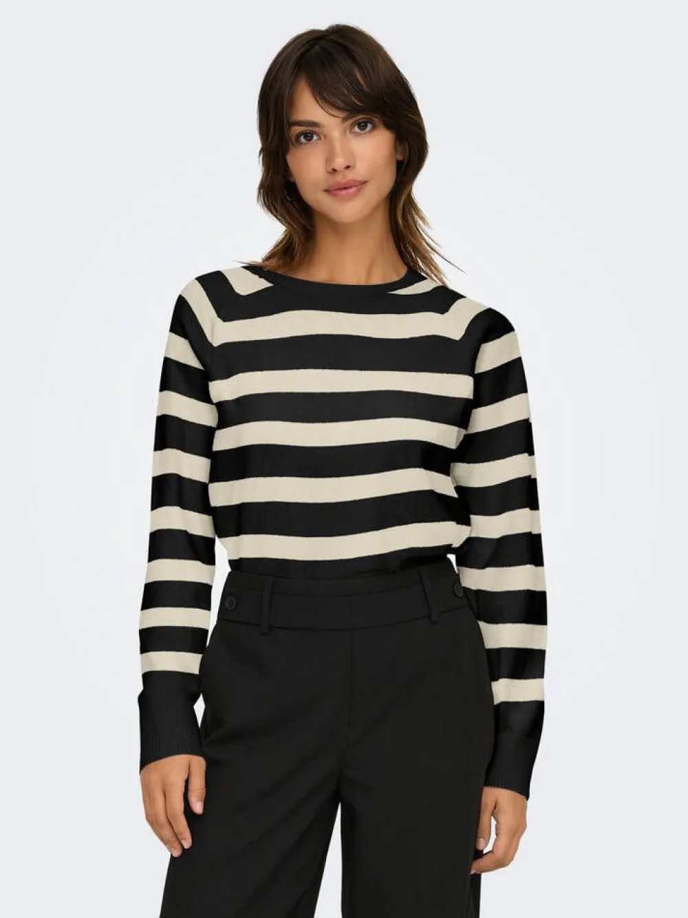 Vaakaraidat kaikessa yksinkertaisuudessaan trendaa myös tässä sesongissa. Klassinen pyöreä pääntie, raglan-hihat …