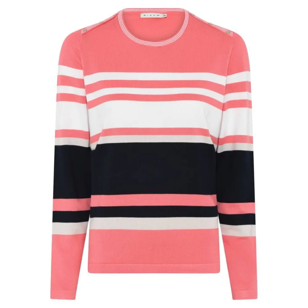 Ajattoman tyylikäs raitaneule hyvin perinteisellä mallilla, jossa on pienet koristenapit olalla.Lisää tietojaKeskita…