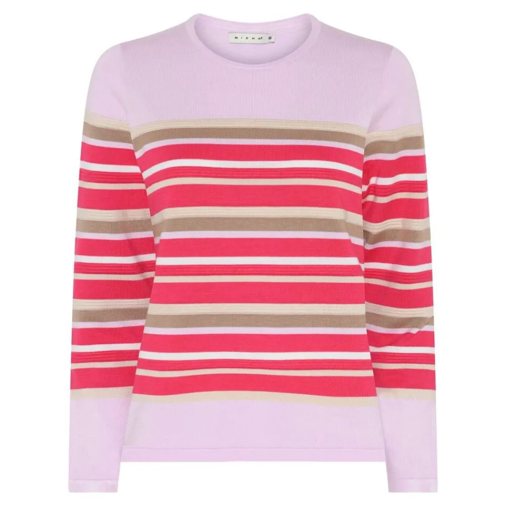 Trendikäs monivärinen ja vaakaraidallinen neule pyöreällä pääntiellä.Lisää tietojaKeskitakapituus: 62 cmMateri…