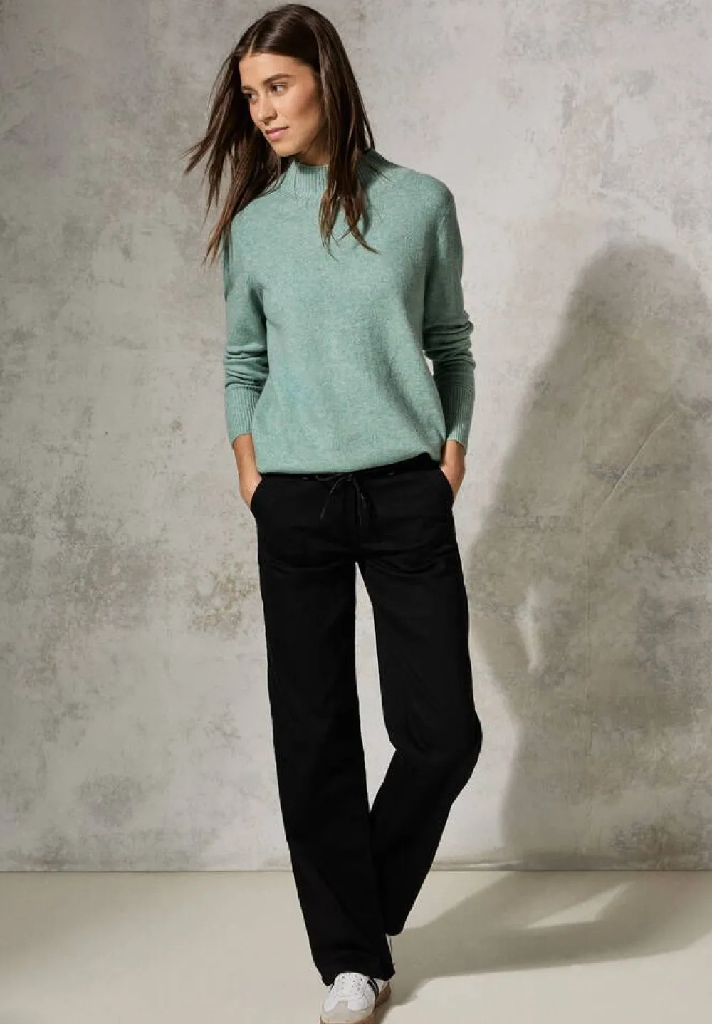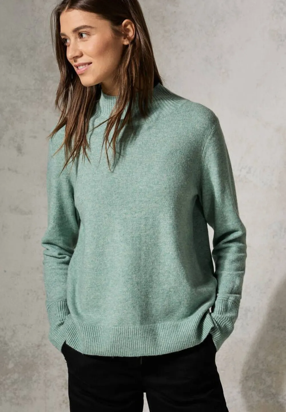 Trendikkään värinen neulepaita korkeahkolla puolipoolokauluksella. Hihansuissa on pitkät resorit.Lisää tietojaHoit…