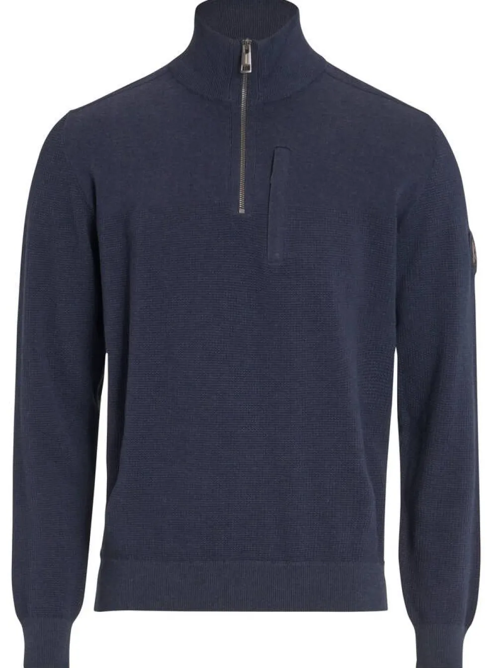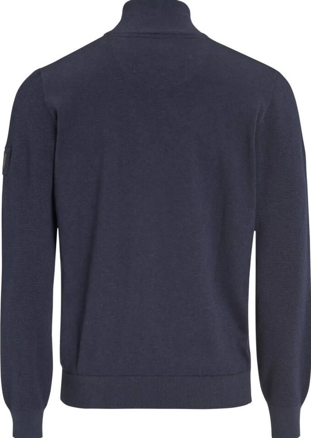 Klassisen tyylikäs puuvillaneule osittain struktuurisella pinnalla. Neuleessa on korkea kaulus ja vetoketju. Toisessa h…