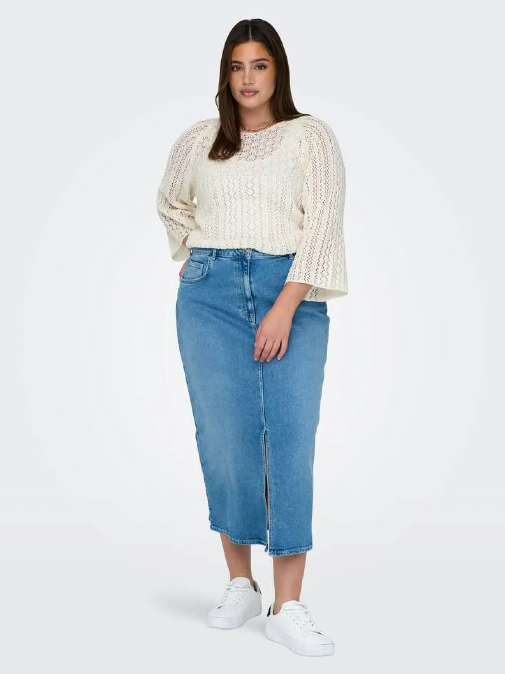 Ihana pitsineuloksinen pusero piparkakkuhelmalla.Lisää tietojaPlus-mitoitusMateriaali:70% kierrätyspuuvilla, 30% poly…