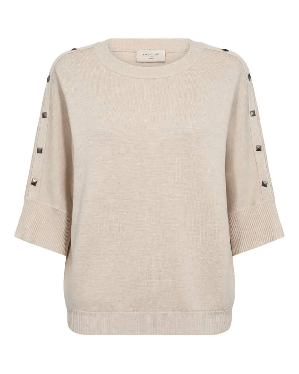 Neulepuserossa on yksinkertainen siluetti, jossa on leveät 3/4 hihat, pyöristetty pääntie, rento malli ja niittikori…