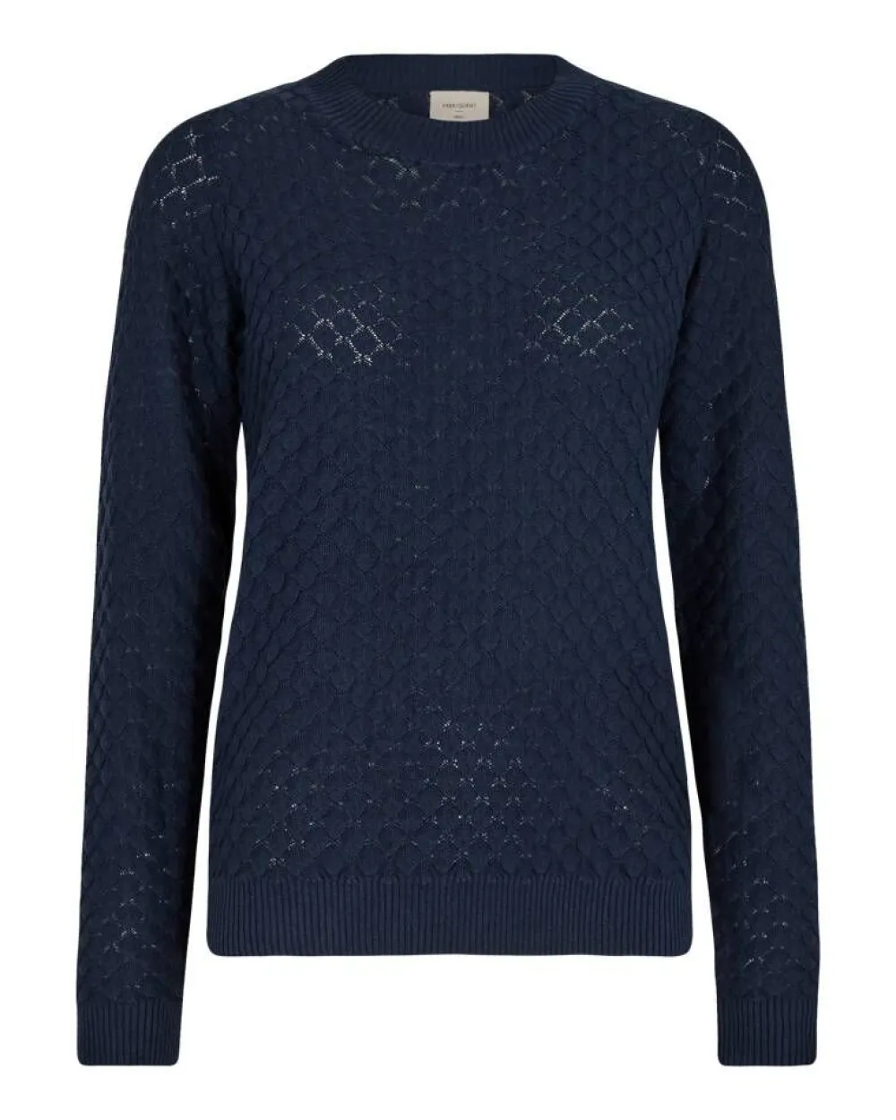 Yksinkertaisen kaunis timanttikuvioinen struktuurineule pitkillä hihoilla ja pyöreällä pääntiellä.Lisää tietoja…