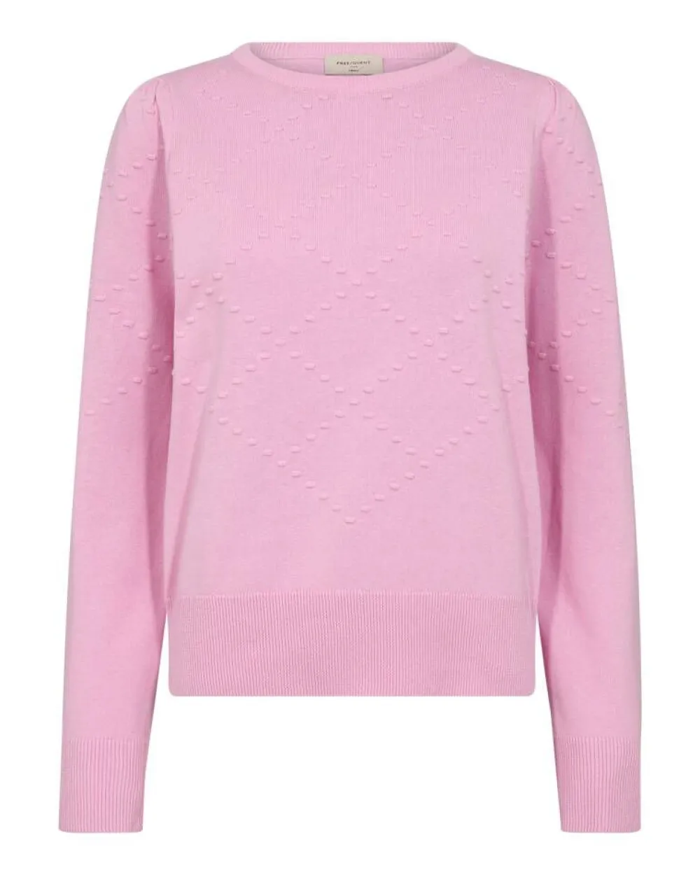 Elegantti ja moderni neulepusero kolmiulotteisen efektin luovalla pistekuvioinnilla. Neulepuseron yksinkertainen siluett…