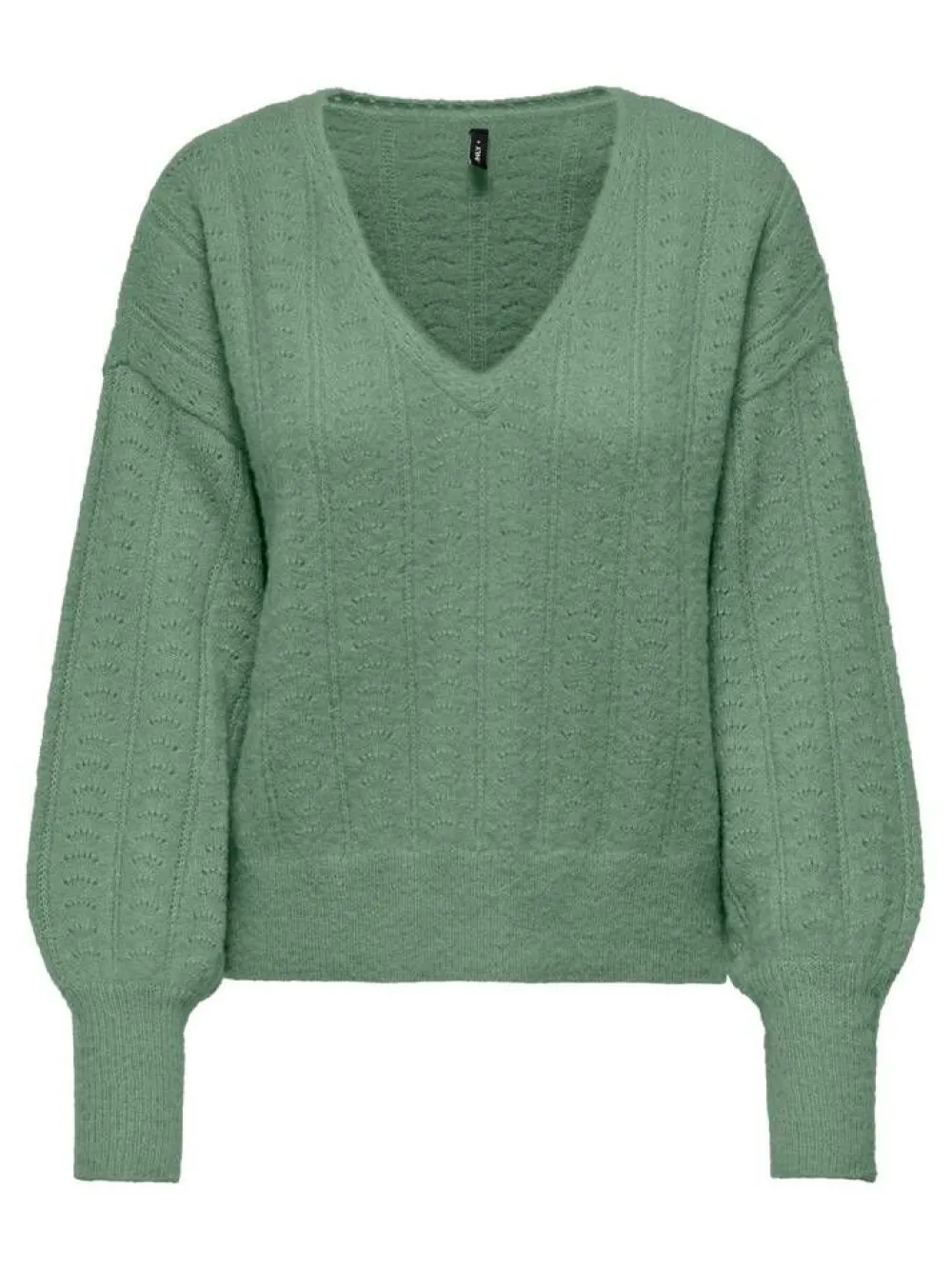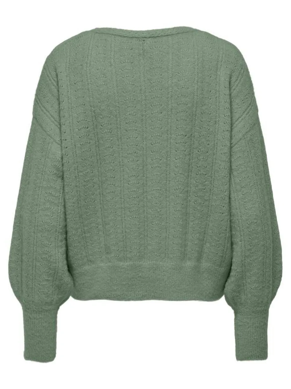 Kierrätyspolyesteristä valmistettu hengittävä neulepusero trendikkäällä muotoilulla, pussihihoilla ja leveillä r…