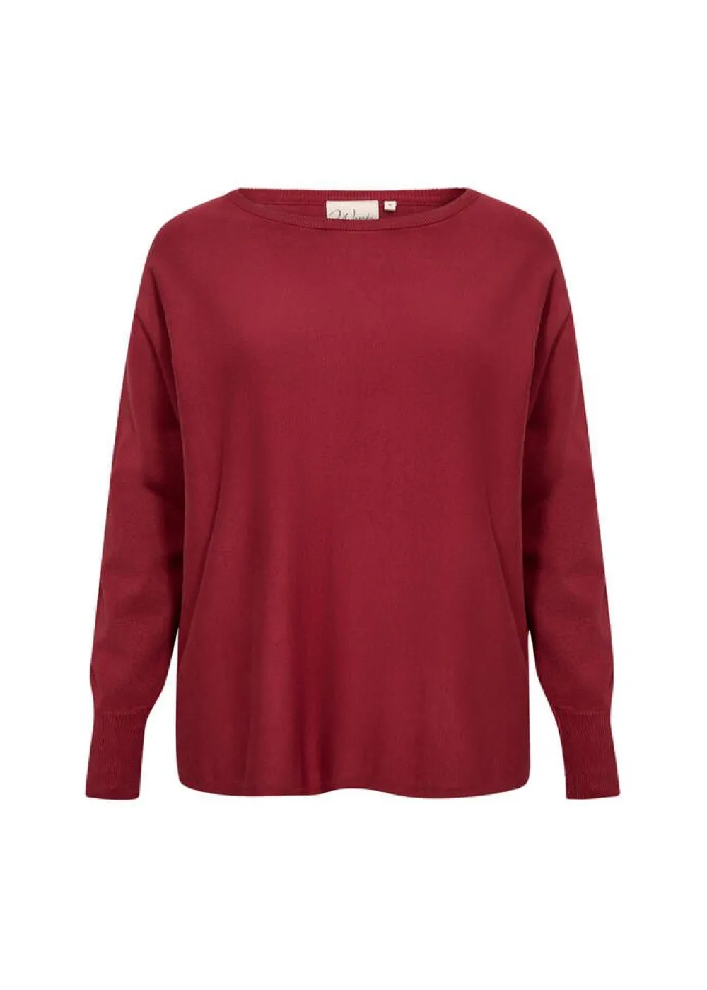 Naisellinen sileäpintainen neulepaita avaralla venepääntiellä ja pitkillä lepakkohihoilla, joissa on leveät jous…
