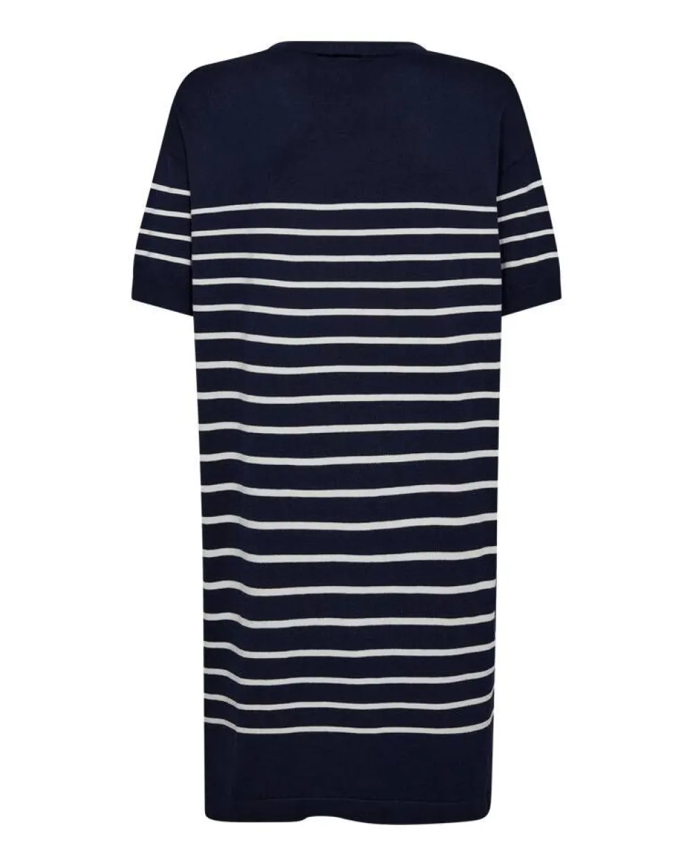 Raikkaan raidallinen neulemekko kevyen keväiseen tyyliin. Lyhyet hihat tekevät tästä mallista monipuolisen, jonka sa…