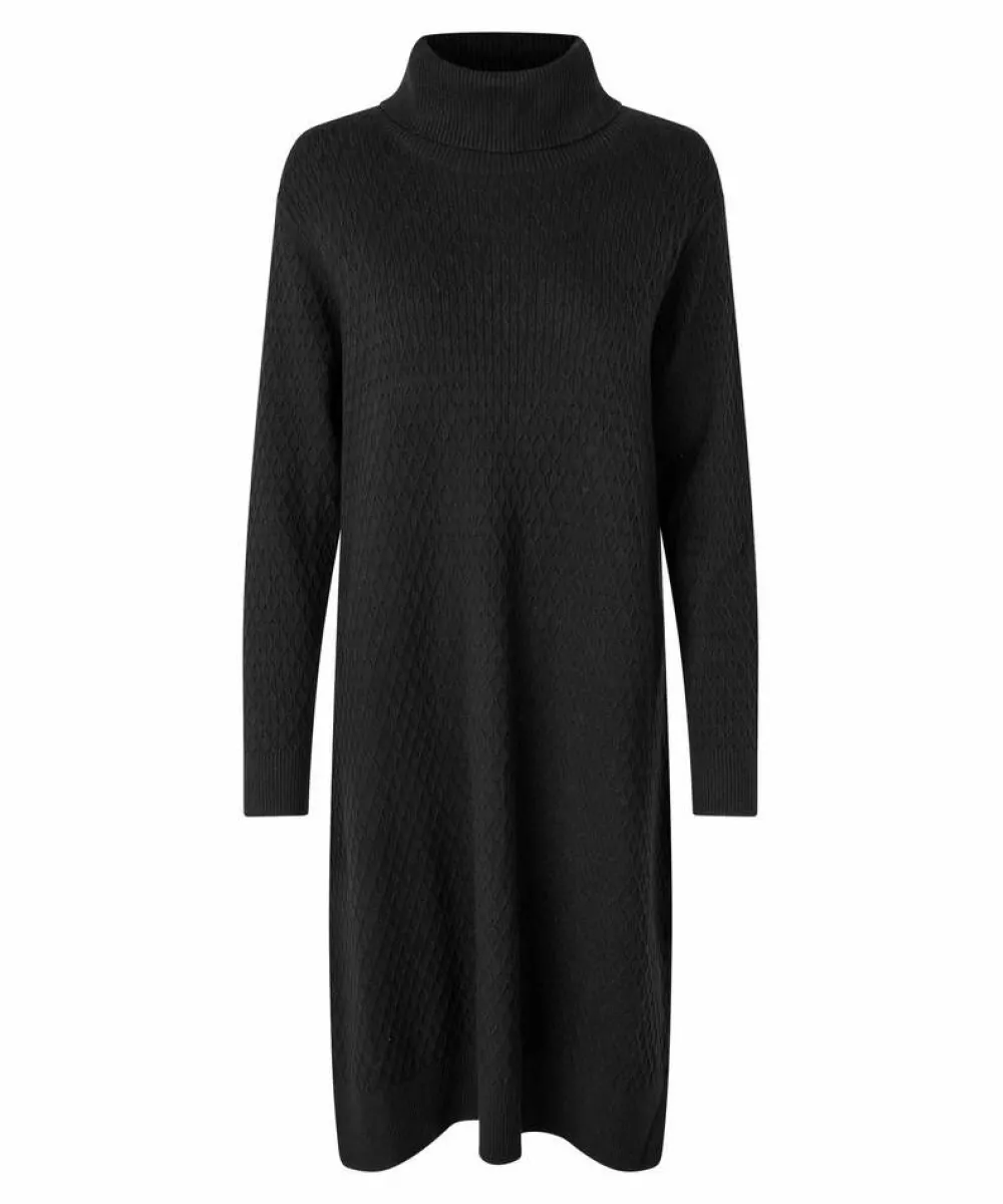 Rennon tyylikäs moneen tilaisuuteen sopiva a-linjainen neulemeko, jossa on taitettu poolokaulus ja salmiakkikuvioista n…